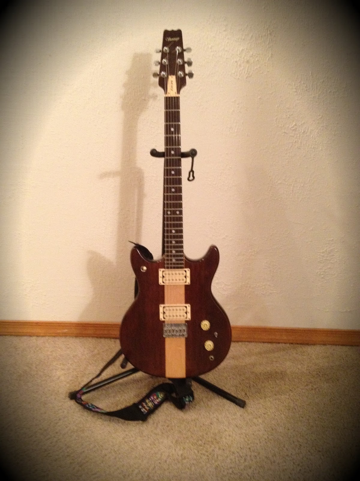 One guitar I liked playing around with was a well-worn Vantage VS600 “Witch”, a Japanese model manufactured in the early 1980s.